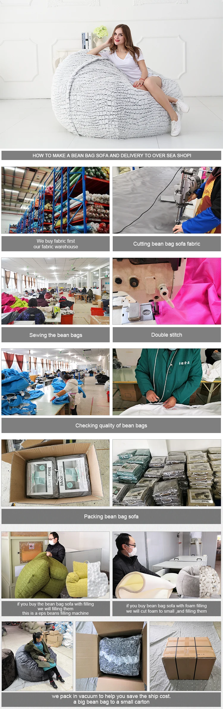 Tongxiang Funny Homeware co.,Ltd is a experienced professionals bean bag chair factory. We manufacture indoor and outdoor bean bags, foam filled chairs . Funny Homeware has taken it’s craftsmanship and built a new reputation of quality custom beanbags that can be made and delievered in 45 days or less. We are located in Tongxiang city,Zhejiang Province. We are an hour away from Shanghai and 45 minutes from Hangzhou.Zhejiang province is the centre of textile and furniture industry,we have a great advantage of finding unique accessories and to source for quality raw materials with competitive price.