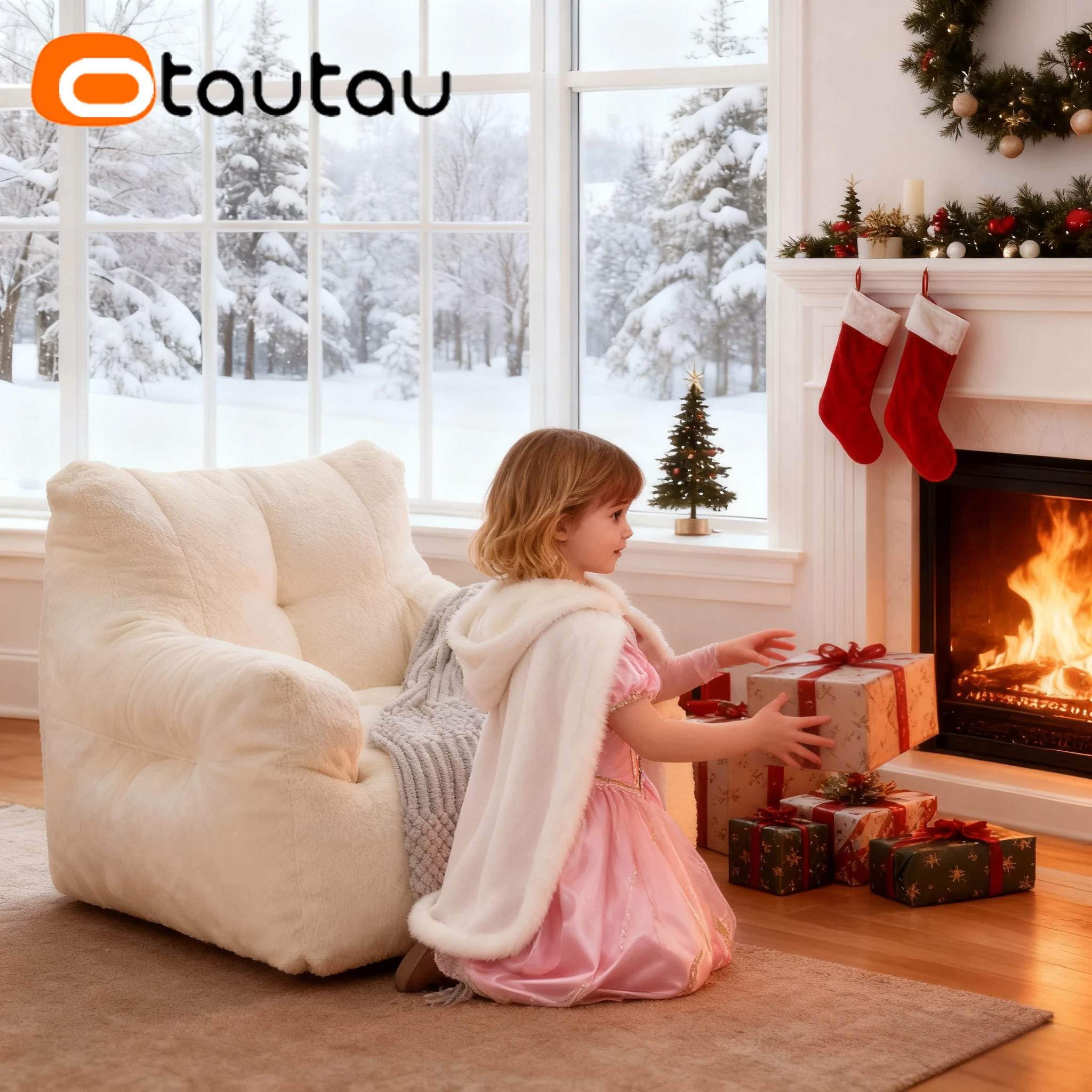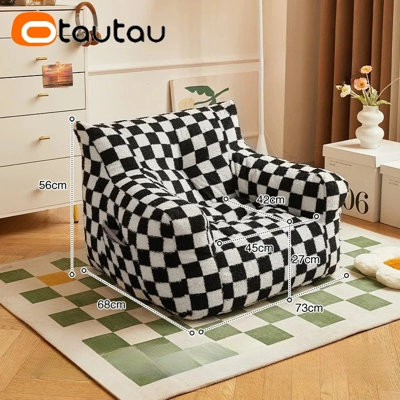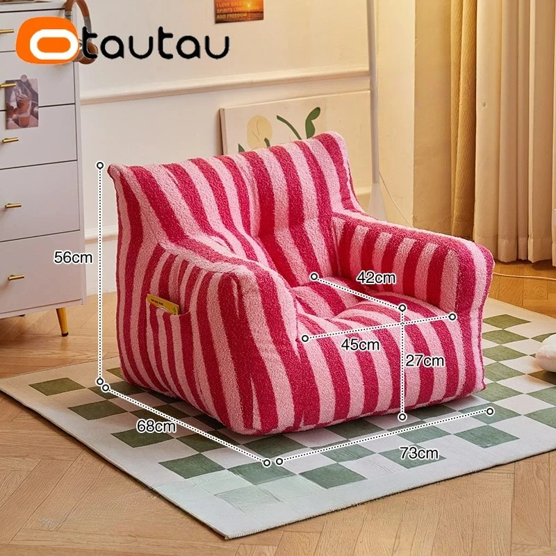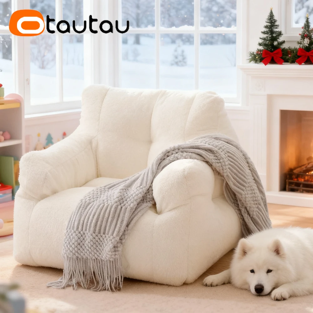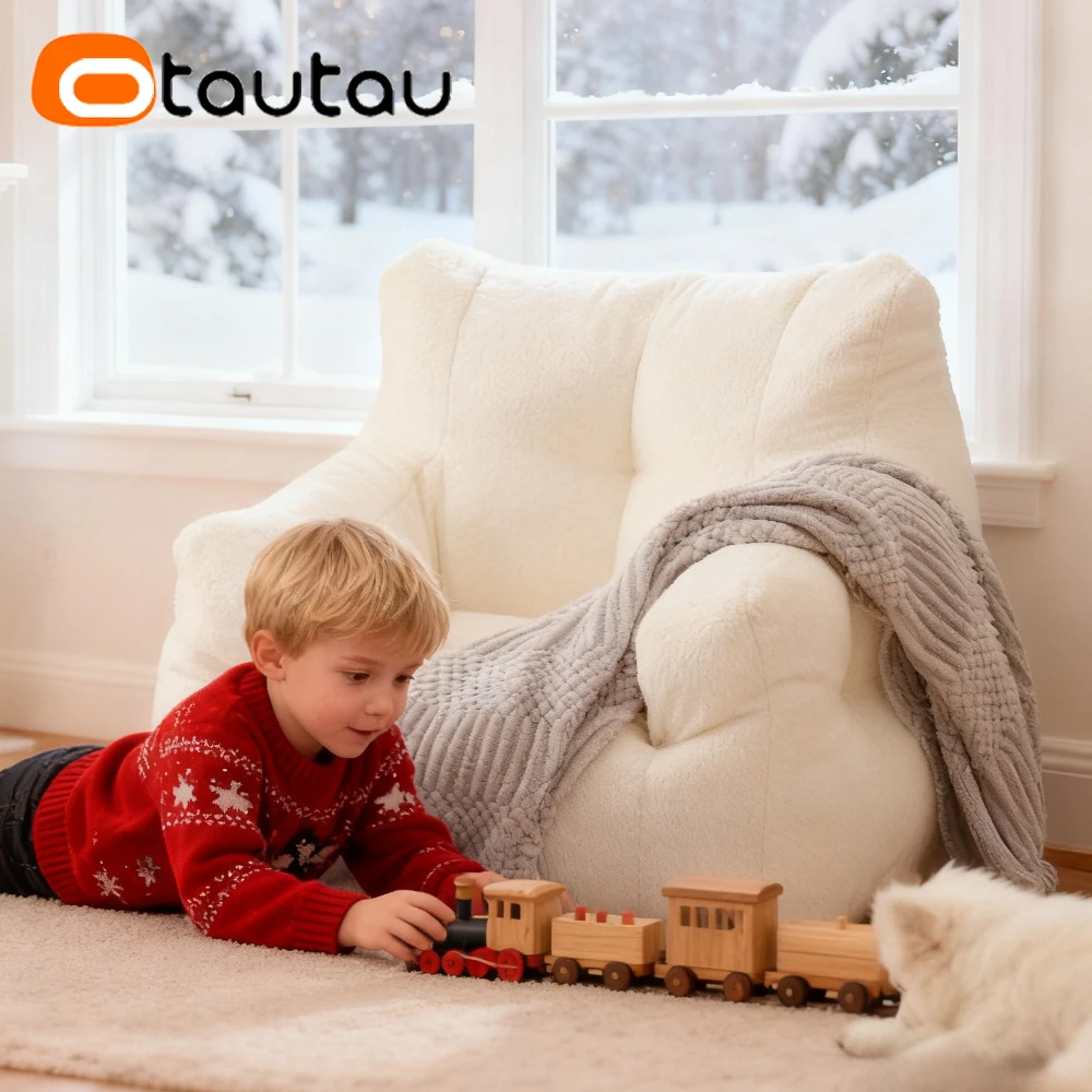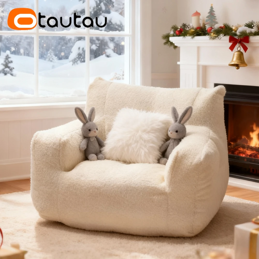OTAUTAU Sall Size M 6-10 Age Kids Bean Bag Chair with Filling Faxu Lamb Children Christmas Gift SF067